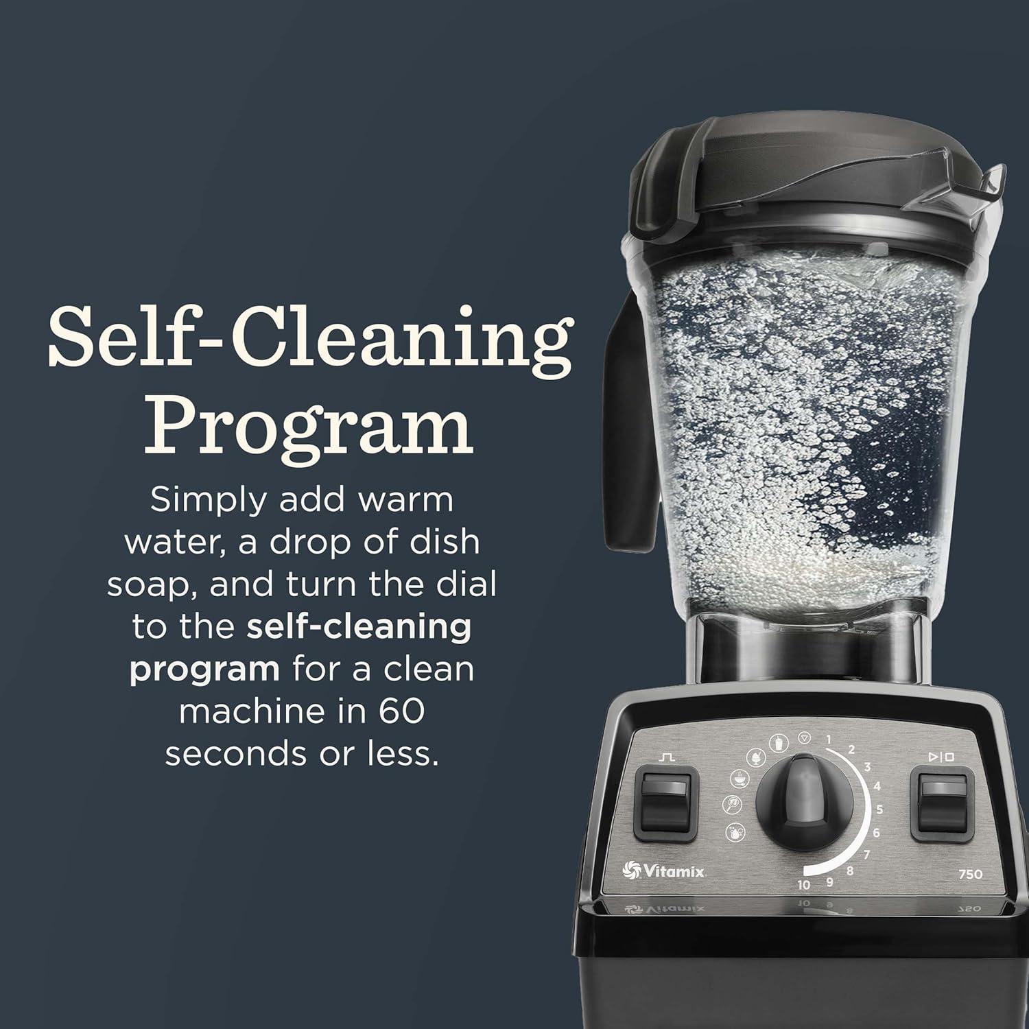 Self-Cleaning Program: Just add warm water, a drop of dish soap, and run the Self-Cleaning Program; the blender will clean itself in 60 seconds or less